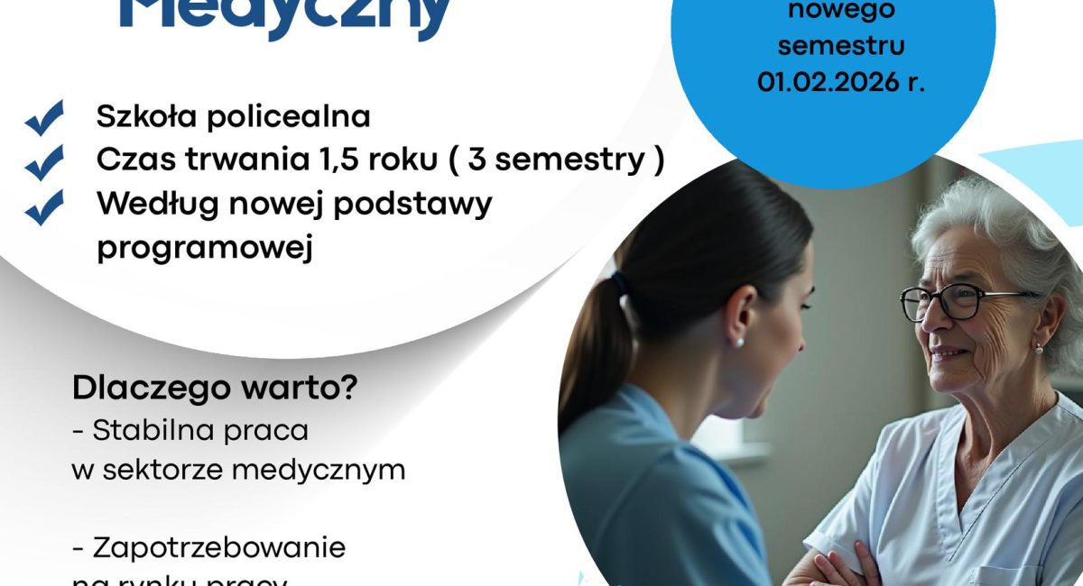 Zapraszamy do bezpłatnej nauki na kierunku Opiekun medyczny w szkole policealnej. Kształcenie odbywa się zgodnie z nową podstawą programową, a cały cykl nauki trwa jedynie 1,5 roku (3 semestry).