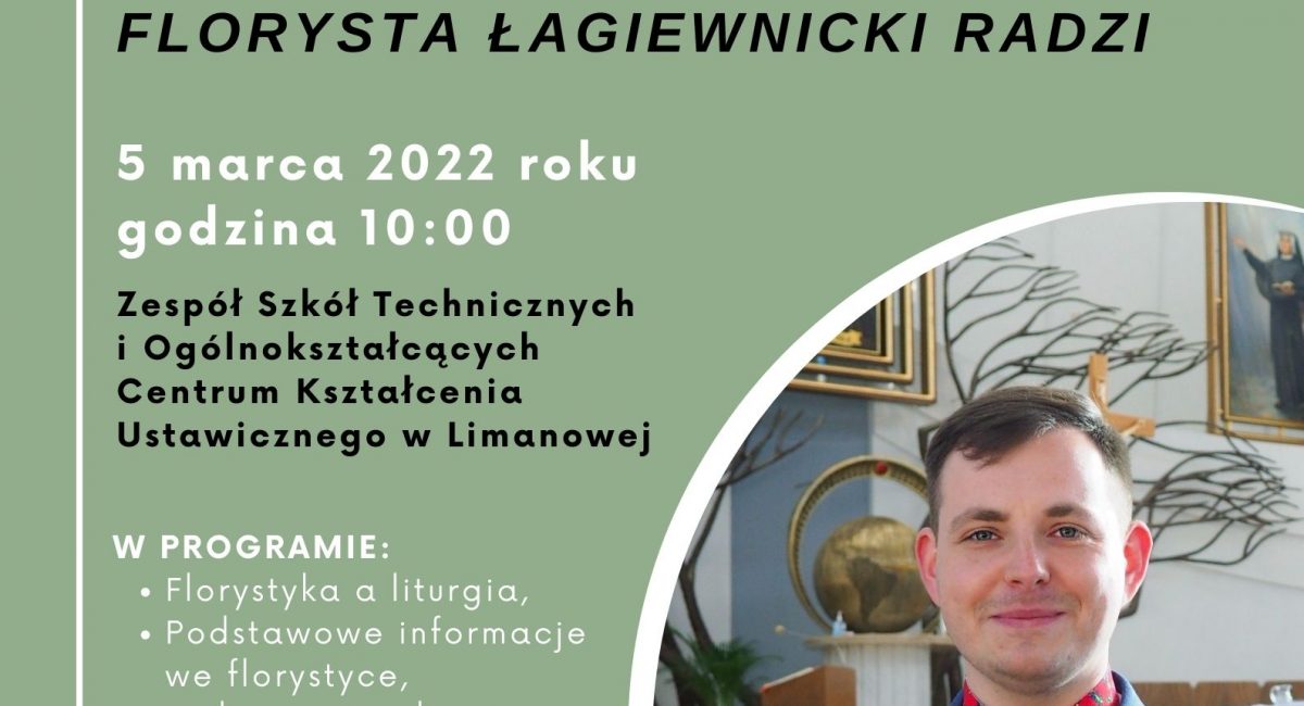 W sobotę 5 marca 2022 roku o godzinie 10:00 w budynku Zespołu Szkół Technicznych i Ogólnokształcących Centrum Kształcenia Ustawicznego w Limanowej, odbędzie się seminarium florystyczne pod nazwą „Florysta łagiewnicki radzi”. Prelegentem podczas spotkania będzie Michał Zdanowski, florysta z Łagiewnik. W limanowskim CKU od kliku lat można zdobywać kwalifikacje w zawodzie florysta w rocznej i bezpłatnej szkole policealnej. Planowane spotkanie organizowane jest dla chętnych i absolwentów CKU, którzy często zajmują się dekoracjami w kościołach i kaplicach. Będą również prezentowane kompozycje florystyczne. Udział w marcowym seminarium jest bezpłatny, jednak trzeba zgłosić chęć udziału w sekretariacie ZSTiO lub pod numerem telefonu 18 3372-602.